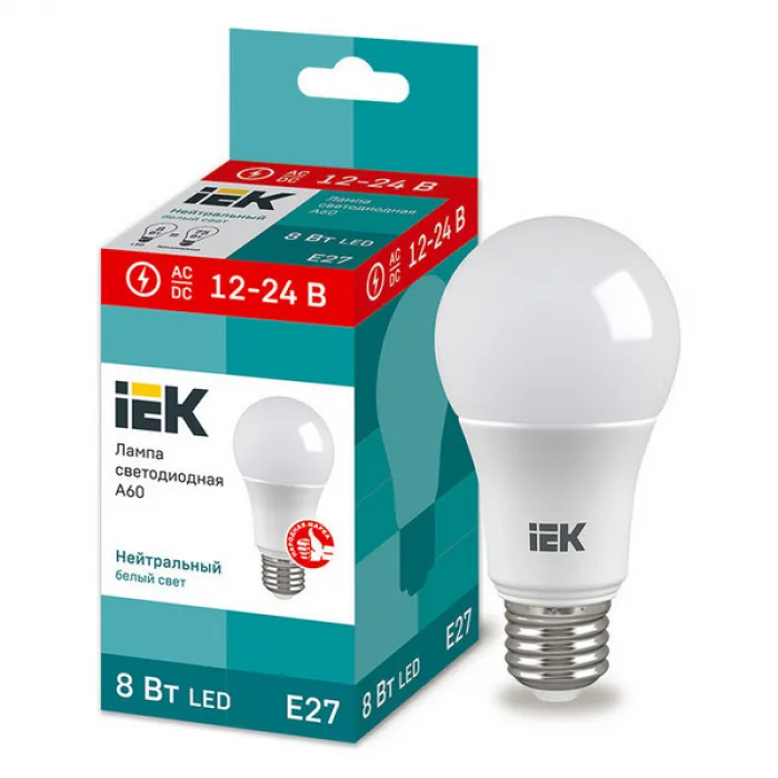 Лампа МО светодиодная низковольтная IEK A60 8Вт 12-24В 4000К E27, LLE-A60-08-12-24-40-E27, Нижний Новгород