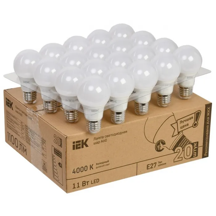 Лампа светодиодная IEK A60 11Вт 230В 4000К E27 (20шт/уп.), LLE-A60-11-230-40-E27-20, Нижний Новгород