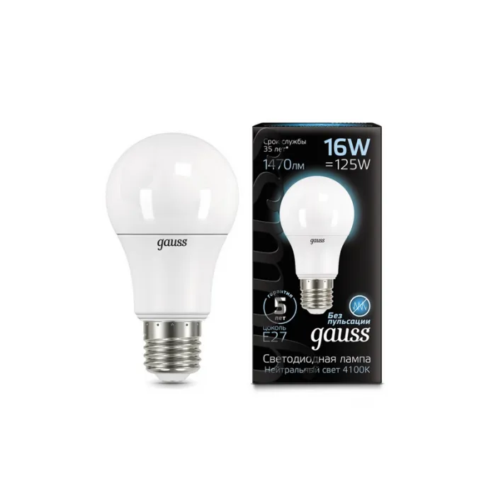 Лампа светодиодная Gauss A60 16W E27 4100K, 102502216, Нижний Новгород