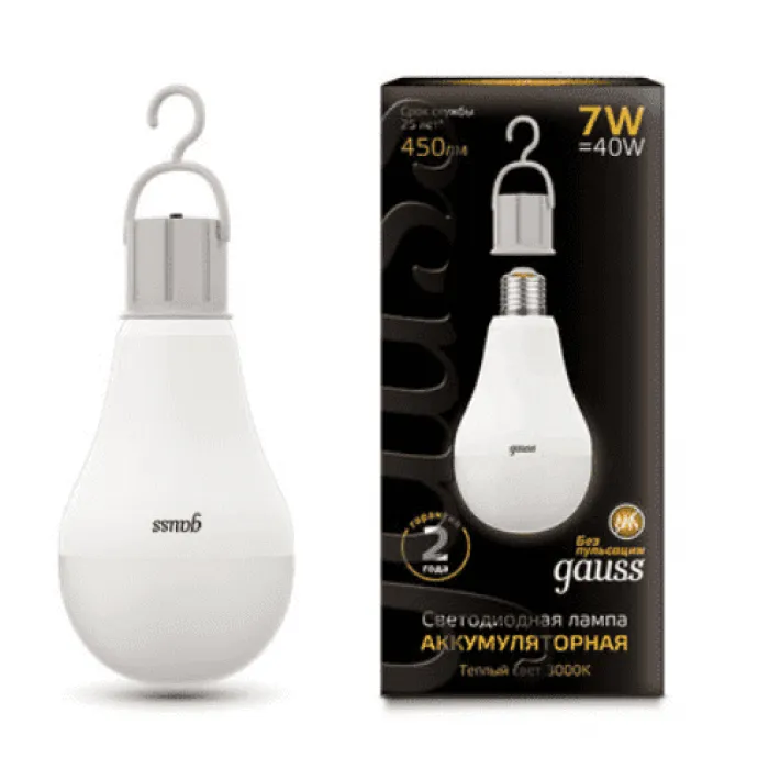 Лампа Gauss LED A60 7W E27 450lm 3000K с Li-Ion аккумулятором 102402107 Цоколь: Е27Световой поток: 450