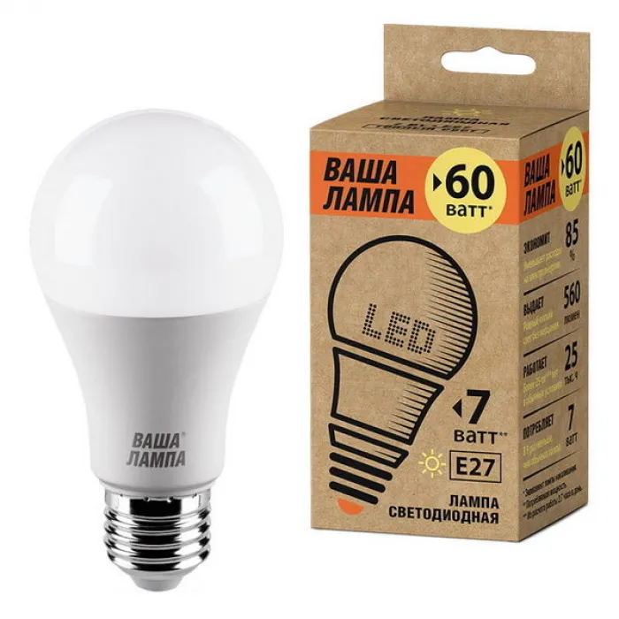 Лампа светодиодная Wolta A55 7Вт Е27 3000К, 25Y55BL7E27, Нижний Новгород