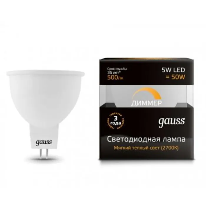 Лампа диммируемая светодиодная Gauss MR16 GU5.3-dim 5W 2700K/3000К, 101505105-D, Нижний Новгород