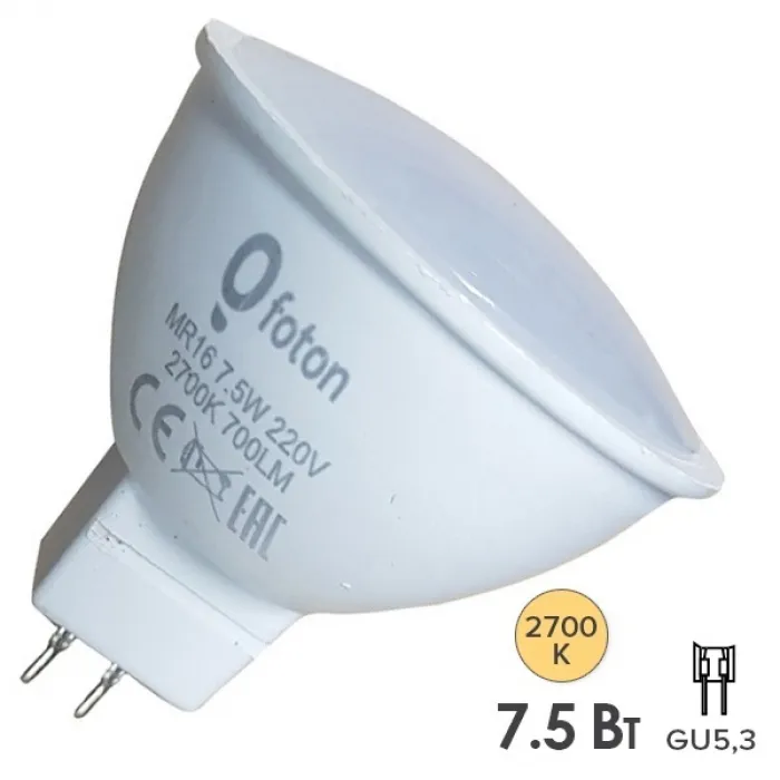 Лампа светодиодная Foton MR16 7,5W 2700K 220V GU5.3 700Лм, 604644, Нижний Новгород