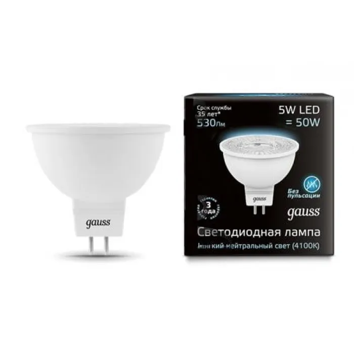 Лампа светодиодная Gauss MR16 GU5.3 5W 4100K, 101505205, Нижний Новгород