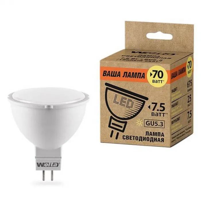 Лампа светодиодная Wolta MR16 7,5Вт GU5.3 3000К, 25YMR16-220-7.5GU5.3, Нижний Новгород