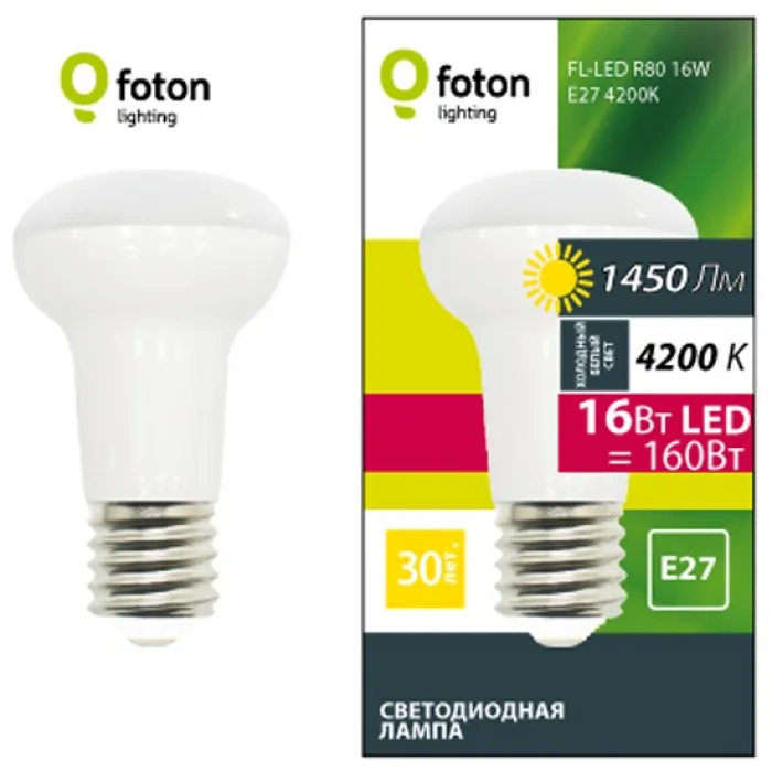 Лампа светодиодная Foton R80 16W 4200К E27 1450lm, 602916, Нижний Новгород