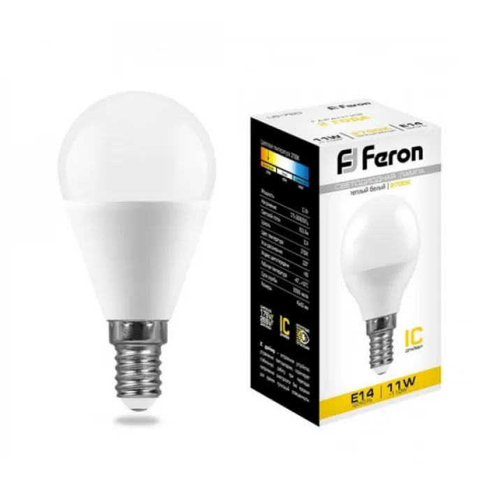 Лампа светодиодная Feron G45 (Шар) LB-750 E14 11W 2700K, 25946, Нижний Новгород