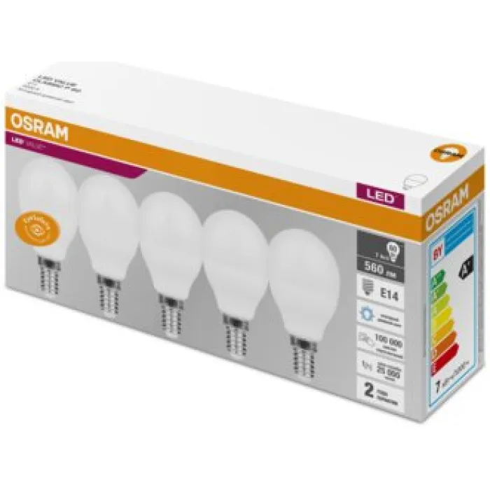 Лампа светодиодная OSRAM G45 (Шар) 7SW/865 230В E14, 4058075579682 - это энергоэффективное освещение для вашего дома или офиса. Светильник имеет стандартный цоколь E14 и потребляет всего 7 ватт энергии, что делает его идеальным выбором для замены традиционных ламп накаливания.