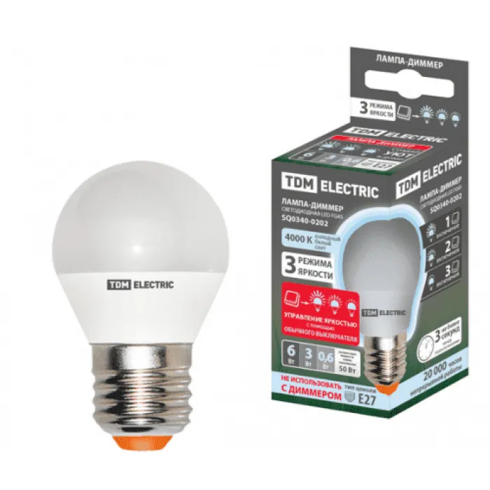 Лампа диммируемая светодиодная TDM G45 (Шар) 6Вт 230В 3000К E27, SQ0340-0203, Нижний Новгород
