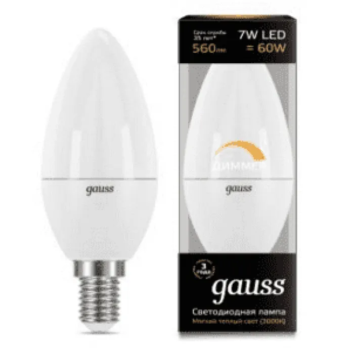 Лампа диммируемая светодиодная Gauss свеча LED Candle-dim E14 7W 3000К, 103101107-D, Нижний Новгород