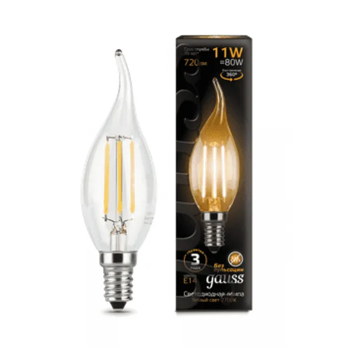 Лампа филаментная светодиодная Gauss свеча на ветру E14 11W 720lm 2700K, 104801111, Нижний Новгород
