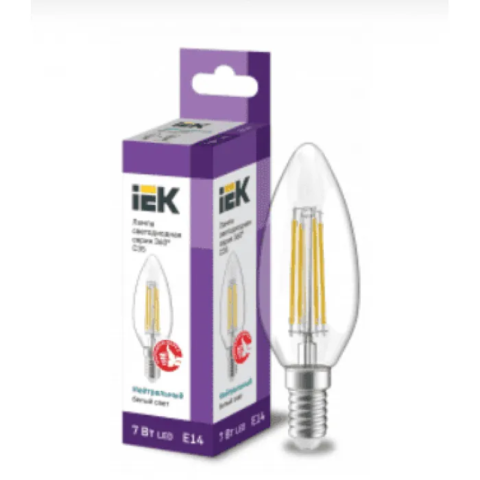 Лампа филаментная светодиодная IEK свеча C35 7Вт 230В 4000К E14, LLF-C35-7-230-40-E14-CL, Нижний Новгород