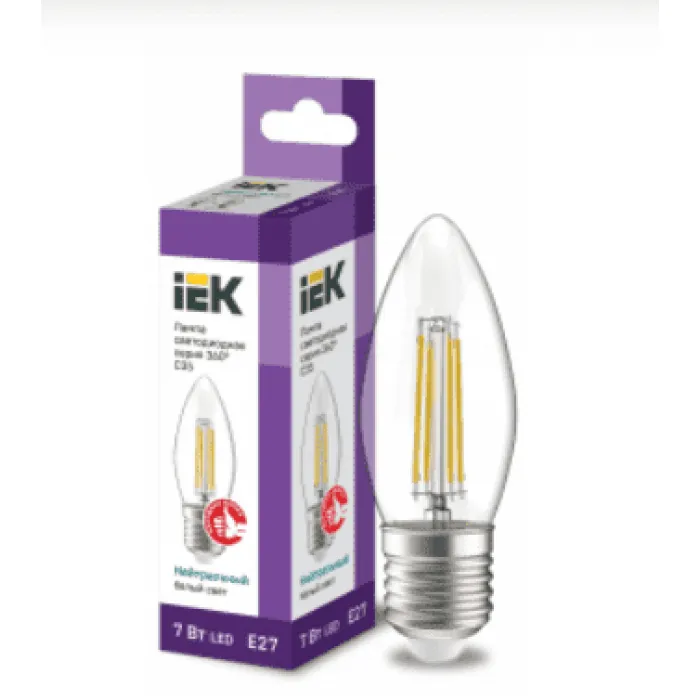 Лампа филаментная светодиодная IEK свеча C35 7Вт 230В 4000К E27, LLF-C35-7-230-40-E27-CL, Нижний Новгород