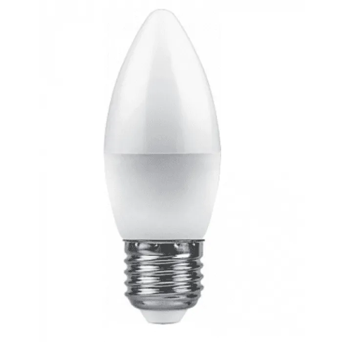 Лампа светодиодная FERON LB-570, C37 (свеча), 9W 230V E27 6400К (белый), рассеиватель матовый белый, 840Lm, угол рассеивания 200°, корпус пластик, 100*37мм