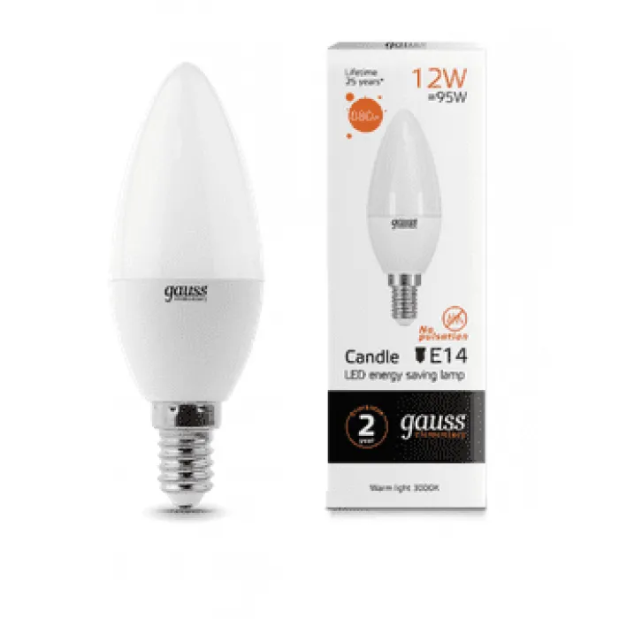 Лампа светодиодная (LED) «свеча» d37мм E14 240° 12Вт 180-240В матовая тепло-белая 3000К Gauss Класс энергоэффективностиA+