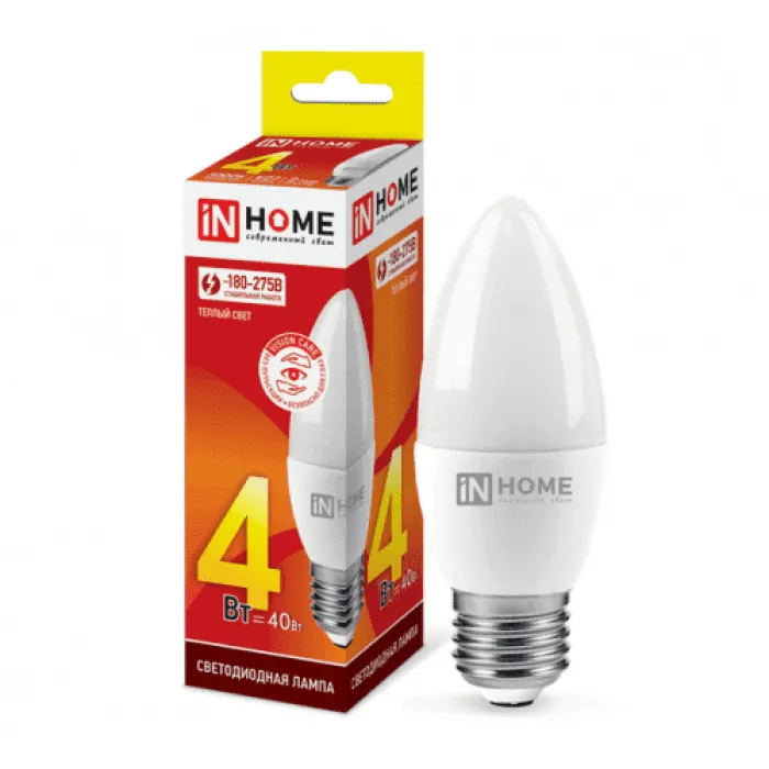 Лампа светодиодная IN HOME свеча 4Вт 230В Е27 3000К 360Лм, 4690612030111, Нижний Новгород