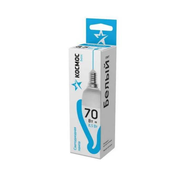 Лампа светодиодная Космос свеча на ветру обладает мягким и комфортным светом, который создает уютную атмосферу в помещении. Ее потребляемая мощность составляет 8.5 Вт, что делает ее энергоэффективным выбором для освещения. Лампа имеет цоколь E14 и работает от сети переменного тока 220 В. Цветовая температура свечения составляет 4500K, что придает помещению естественный свет, близкий к дневному. Модель LkecLED8.5wCWE1445 отличается надежностью и долгим сроком службы, что делает ее идеальным выбором для освещения дома или офиса.