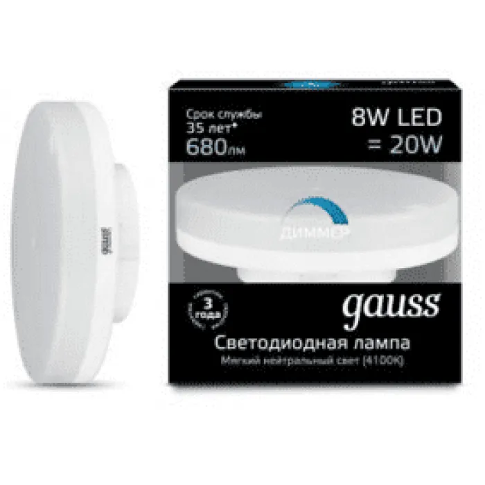 В нашем магазине Главэлектрика в Нижнем Новгороде, вы можете приобрести с доставкой по Нижнему Новгороду товар Лампа диммируемая светодиодная Gauss GX53 8W 4100K, 108408208-D.