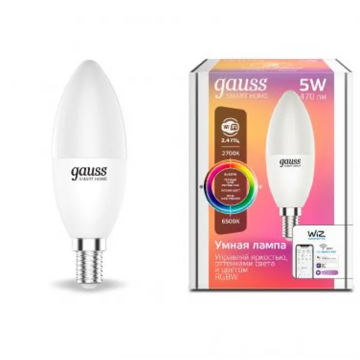 Светодиодные умные лампы с Wi-Fi Gauss свеча 5Вт E14 C37 2700-6500K Smart Home RGBW, 1190112, Нижний Новгород