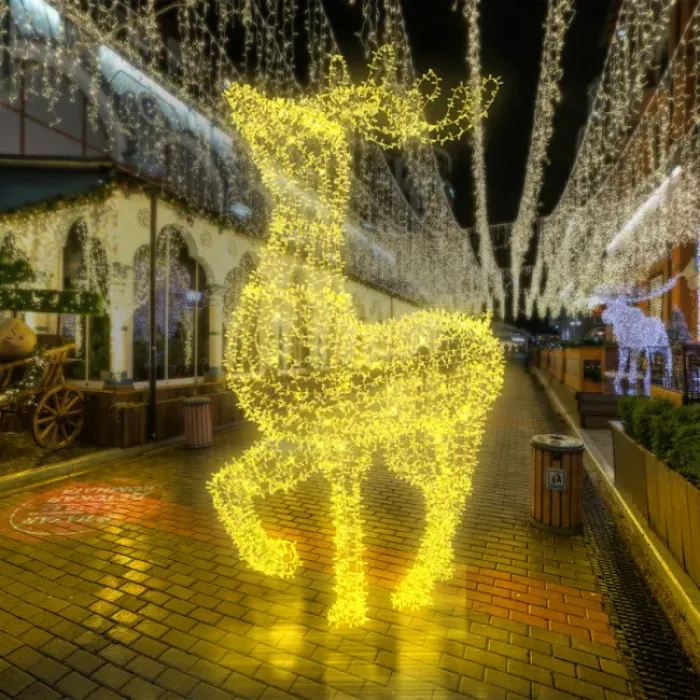 Купи уникальную объемную фигуру "Северный олень" с 3000 светодиодами, которая поразит воображение своим ярким и оригинальным видом. Эта фигура сочетает в себе красоту и эффективность, обеспечивая потрясающее освещение в теплом белом цвете. С ее высотой 300 см и шириной 200 см, она станет настоящим центральным элементом в любом пространстве. Идеально подходит для декорирования домов, садов, парков или коммерческих объектов. Фигура имеет защиту от влаги и пыли (IP65), что делает ее устойчивой к различным погодным условиям. Установка проста и безопасна благодаря надежной конструкции и возможности подключения к электросети 230V. Позвольте этому фигурному оленю принести в вашу жизнь уют и магию настроения во время праздников или просто для создания особенной атмосферы.