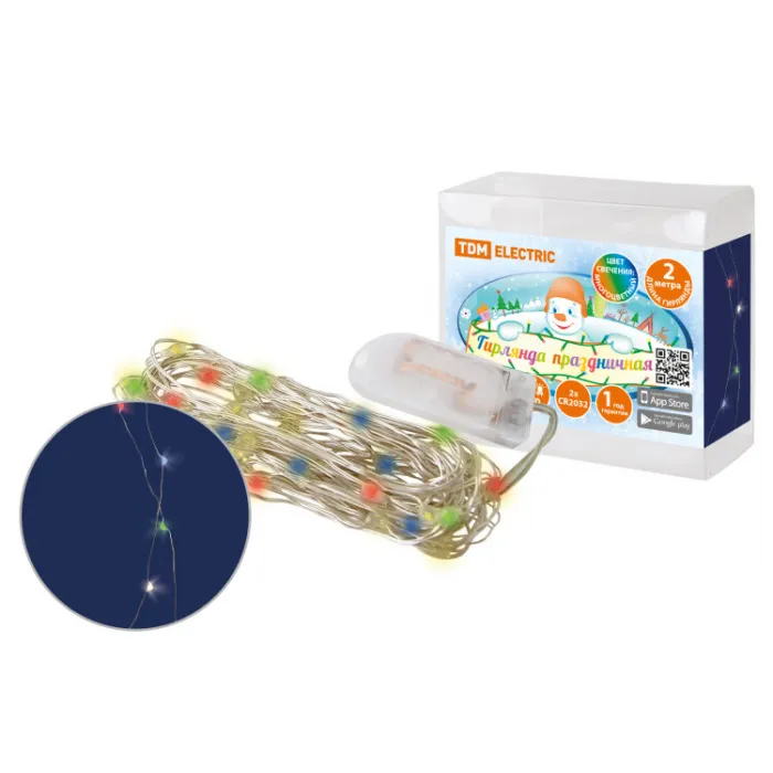 Гирлянда светодиодная "Роса20" 20LED, 2м, многоцвет., 2хCR2032 , TDM, Нижний Новгород