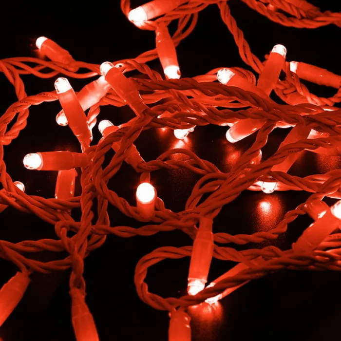 Гирлянда работает от источника питания на 24В, что обеспечивает безопасность использования и экономичность энергопотребления. Цвет света гирлянды - красный, что делает ее идеальным выбором для новогодних и других праздничных мероприятий.