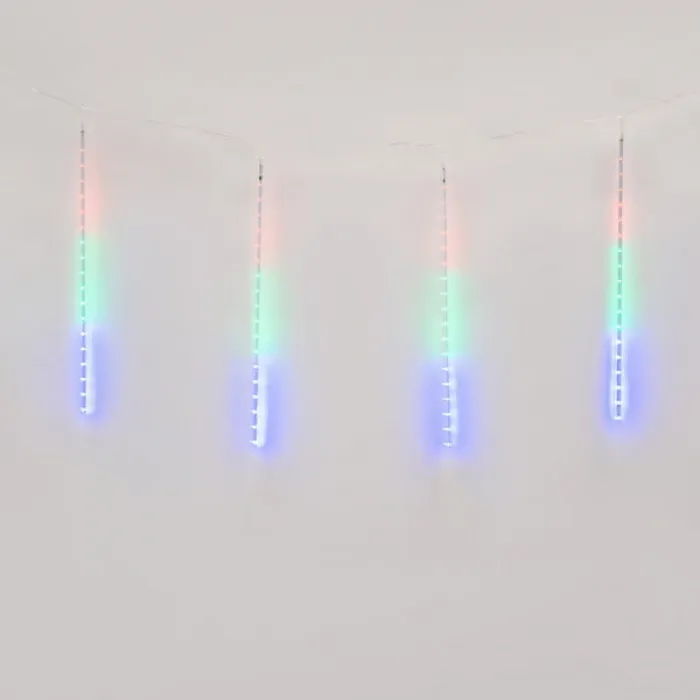 Занавес светодиодный фигурный Uniel ULD-E2405-240/DTK MULTI IP44 METEOR «Падающие звезды», соединяемый. 8 подвесов. 240 светодиодов. Размер 2,4х0,5м. Цвет свечения разноцветный. IP44. Провод прозрачный. Упаковка картон., Нижний Новгород