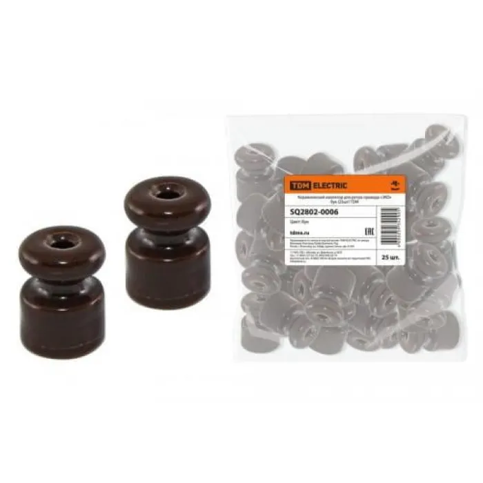 Изолятор керамический для ретро провода коричневый (100шт) "Эко" TDM SQ2802-0006, Нижний Новгород