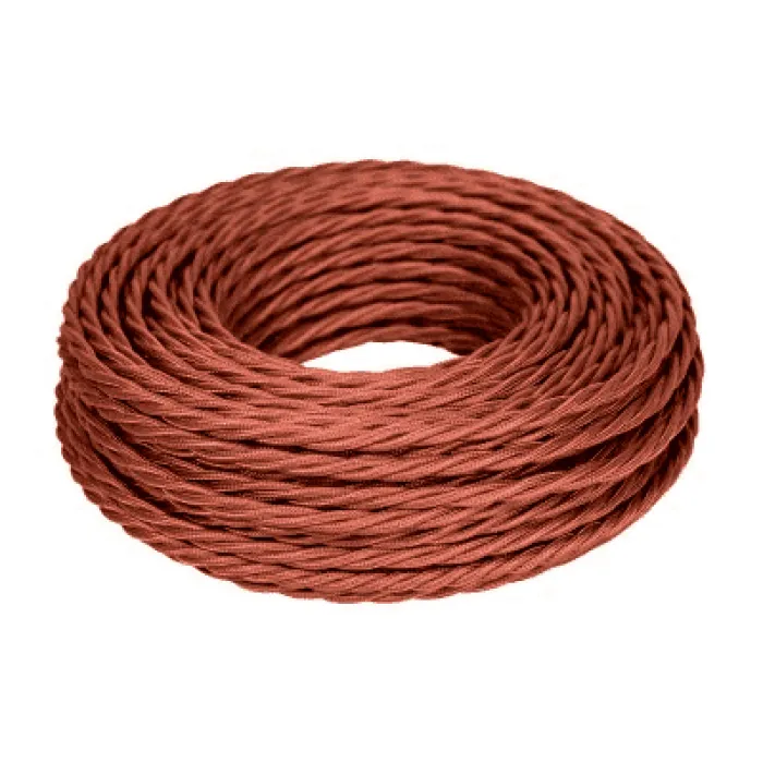 Кабель витой. Продукция стилизована под ретро кабель: она декорирована оплеткой из полиэфирного волокна, называемого также искусственным шелком. По текстуре он действительно схож с шелком. Изоляция выполнена из ПВХ.