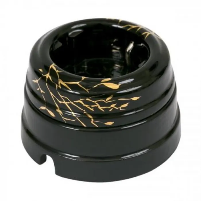 Розетка фарфор двухполюсная, с заземляющими контактами D70x45,золото на черном, Петергоф, Нижний Новгород
