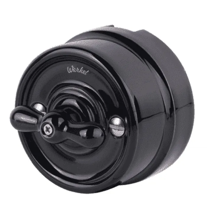 Переключатель поворотный одноклавишный Werkel Retro черный, керамика a036811 Тип выключателя: переключательСтепень защиты (IP): IP20