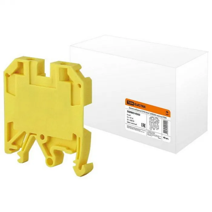 Зажим клеммный проходной 58мм размер ячейки 9мм на DIN-рейку 1 уровень сечение провода 6мм² 24А 0-690В термопласт TDM ELECTRICЗажим наборный ЗНИ-6мм2 (JXB50А) желтый TDM Тип электрич. соединения 1