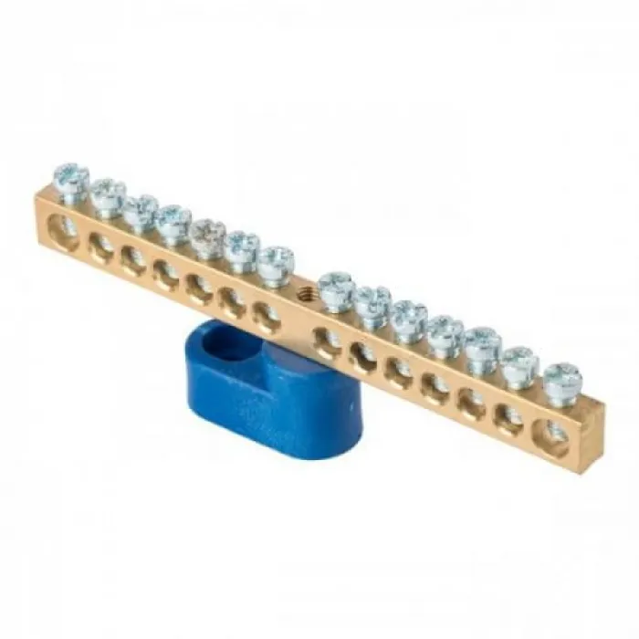 Шина "0" N (6х9мм) 14 отверстий латунь синий угловой изолятор EKF PROxima, Нижний Новгород