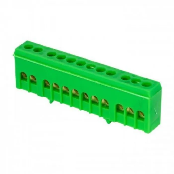 Шина "0" PE (6х9мм) 12 отверстий латунь зеленый изолированный корпус на DIN-рейку розничный стикер EKF PROxima, Нижний Новгород