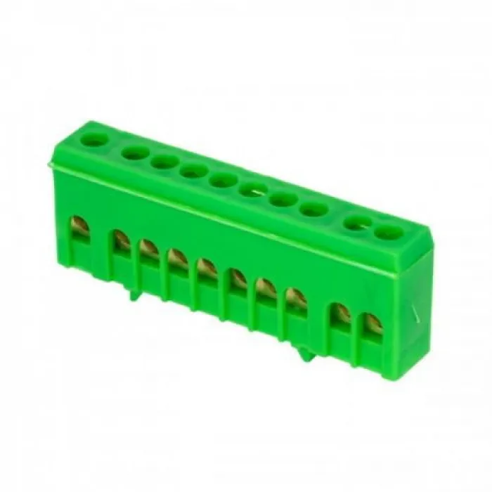 Шина "0" PE (6х9мм) 10 отверстий латунь зеленый изолированный корпус на DIN-рейку EKF PROxima, Нижний Новгород