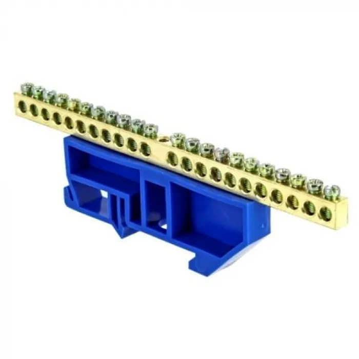 Шина "0" N (6х9мм) 20 отверстий латунь синий изолятор на DIN-рейку EKF PROxima, Нижний Новгород