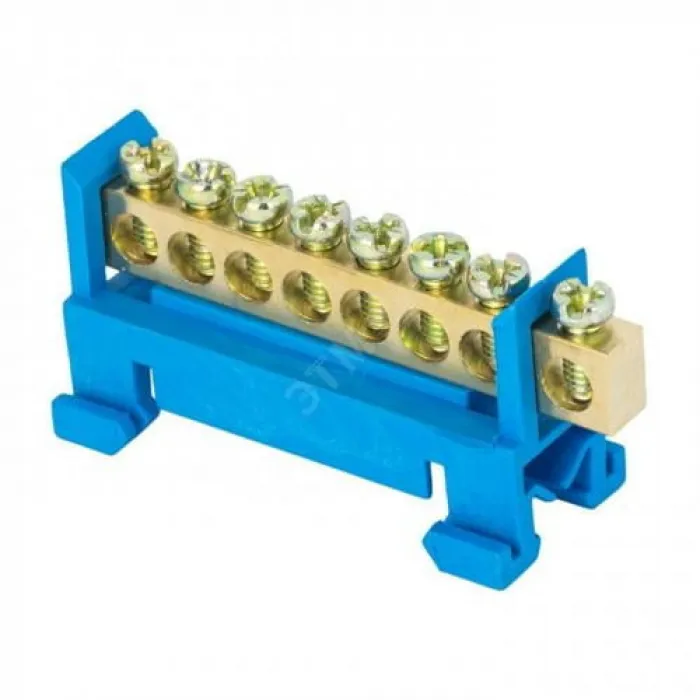 Шина "0" N (6х9мм) 8 отверстий латунь синий изолятор на DIN-рейку EKF PROxima, Нижний Новгород