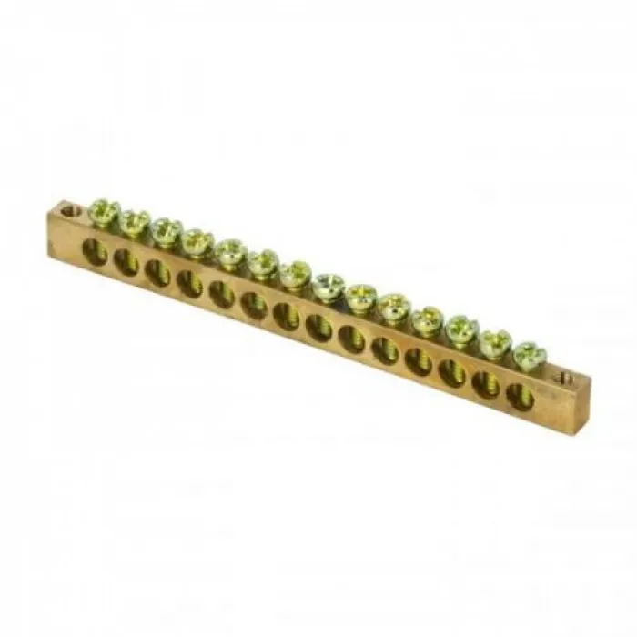 Шина PEN "ноль-земля" (6х9мм) 14 отверстий латунь крепеж по краям EKF PROxima, Нижний Новгород