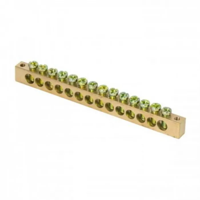 Шина PEN "ноль-земля" (8х12мм) 14 отверстий латунь крепеж по краям розничный стикер EKF PROxima, Нижний Новгород