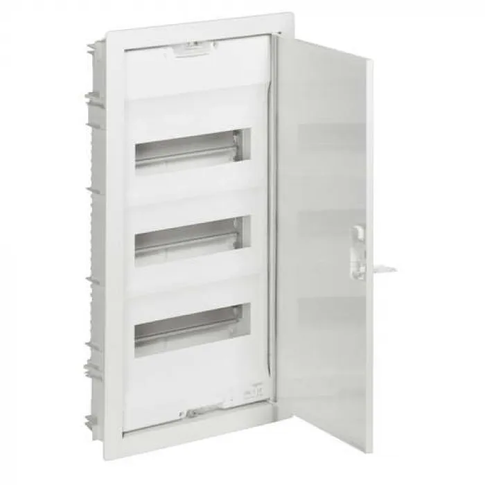 Щит Legrand Nedbox предназначен для установки в нишу и обеспечивает монтаж до 48 модулей (4 ряда по 12 модулей) с шинами N+PE. Металлическая дверь обеспечивает надежную защиту от пыли, влаги и несанкционированного доступа. Этот щит идеально подходит для использования в жилых и коммерческих помещениях, где требуется надежная и безопасная система распределения электропитания.