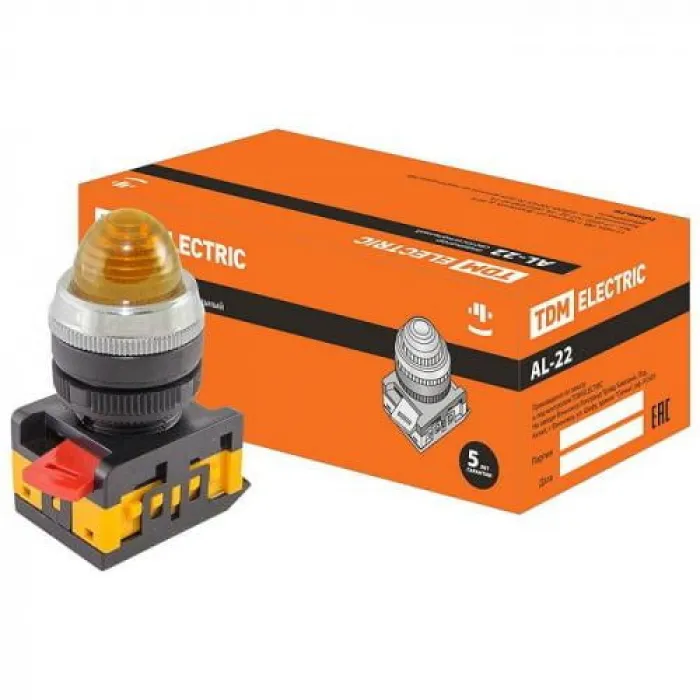 Сигнальная неоновая лампа TDM AL-22 d22мм желтый 230В цилиндр SQ0702-0034, Нижний Новгород