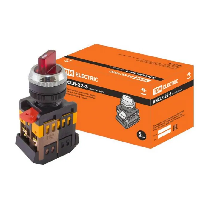 Переключатель TDM АNСLR-22-3, на 3 фиксированных положения, красный, неон/230В, I-O, 1з+1р SQ0703-0004, Нижний Новгород