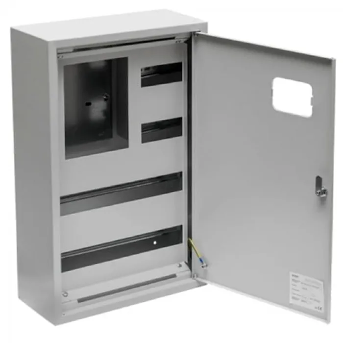 Щиты учетно-распределительные предназначены для установки модульной аппаратуры и электрических счетчиков. Используются для электромонтажа в жилых, административных, торговых и производственных зданиях. Позволяют разместить до 48 однополюсных автоматических выключателя ВА 47-63 марки ЭКФ, а также одно-или трехфазный электрический счетчик энергии.