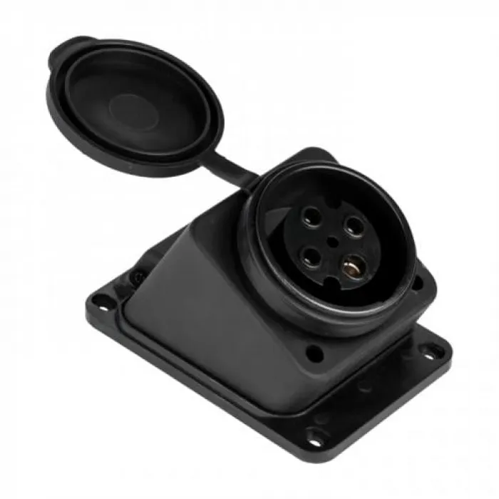 Розетка имеет номинальный ток 32 А и соответствует классу защиты IP44, что обеспечивает защиту от пыли и брызг воды. Это делает ее подходящей для использования в различных промышленных и коммерческих средах, где требуется надежное и безопасное электропитание.