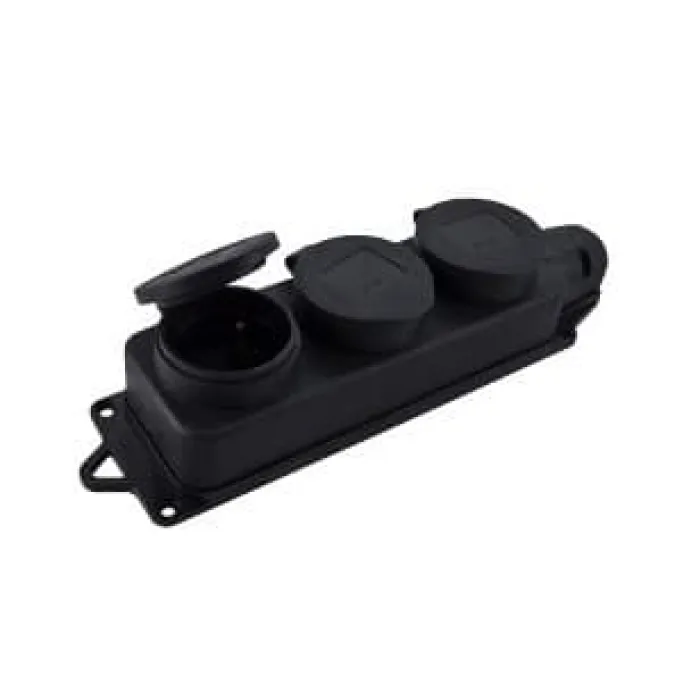 Каучуковая штепсельная розетка (колодка) с заземлением наружной установки 3 розетки с защитными крышками предназначена для использования в сложных эксплуатационных условиях и широко применяются в производстве, строительстве и машиностроении. Они легко монтируются, имеют высокую надежность и долгий срок службы.