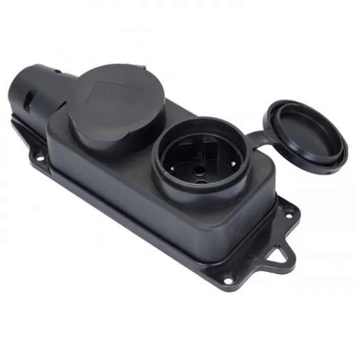 Розетка выполнена из каучука, что делает ее прочной и долговечной. Она имеет степень защиты IP44, что означает, что она защищена от брызг воды и пыли.