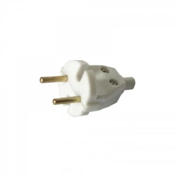 Сетевая вилка угловая. Количество жил и рекомендованное сечение провода: 2×2,5 мм².Материал корпуса: пластик.