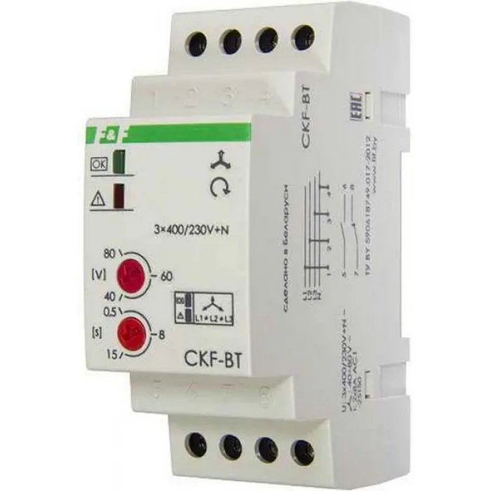 Реле контроля фаз CKF-BT предназначено для защиты электродвигателей и электроустановок, подключенных к трёхфазной сети, в случаях:1. Отсутствия хотя бы одной из фаз.