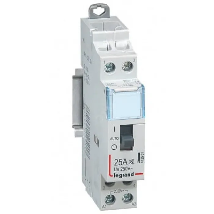 Контактор модульный 412523 25 А, 2 «замыкающихся», 230 В на DIN-рейку («Legrand»)Напряжение катушки управления: 230 В, 50 Гц.