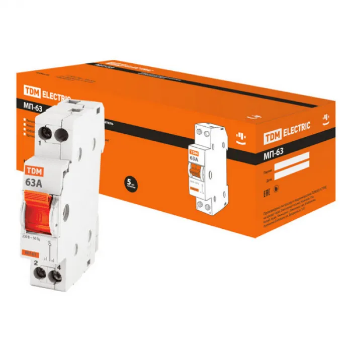 Модульный переключатель МП-63 1P 63А TDM обеспечивает простоту в управлении и надежную работу в различных условиях эксплуатации. Он идеально подходит для использования в промышленных и бытовых электрических системах.